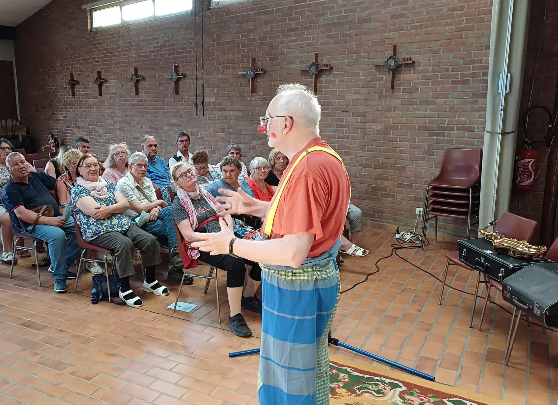 Toneelstuk Les 5 C: Cardinal, Cancer, Covid, Clown et Coulisses door diaken-acteur Luc Aerens